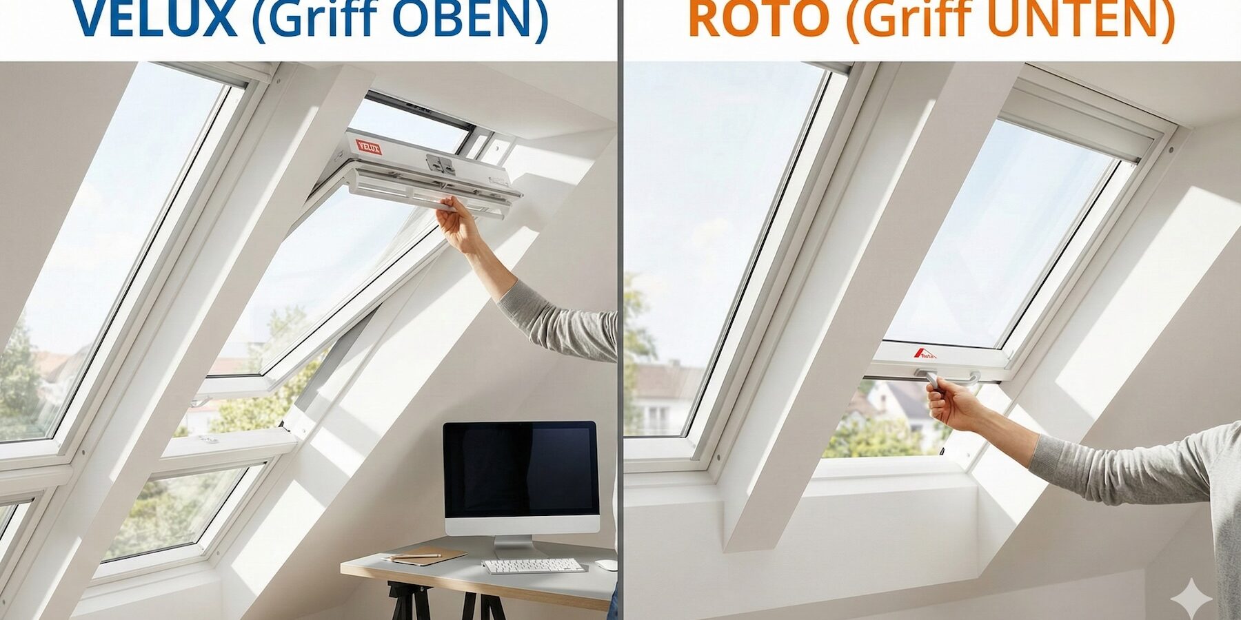 Der wahre Unterschied zwischen Roto und Velux liegt woanders: Nämlich daran, wie Sie das Fenster im Alltag öffnen.